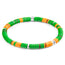 7mm diameter round multicoloured vulcanite vinyl discs and solid .925 sterling silver disc beads with single-layered elastic nylon thread (GB)