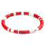 7mm diameter round multicoloured vulcanite vinyl discs and solid .925 sterling silver disc beads with single-layered elastic nylon thread (GB)