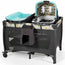 This travel cot/ playpen helps provide a safe and comfortable place for your baby to play or sleep. This playpen/ travel cot system offers a convenient, portable sleeping and plays space for babies from new-born to 3 years. The main playpen is covered in breathable mesh fabric, offering good airflow and observation for parents. A changing mat for babies up to 10kg offers parents a designated space for those all-important nappy changes. A handy hanging bag offers a space for nappies, creams, bottles etc to be stored while a separate removable bassinet with a hood offers new-born babies a safe space to sleep. Along with a music box and 2 hanging toys, this system is portable either by folding or using the 2 wheels to wheel it from room to room. Designed to grow with your baby from new-born to infant to toddler, don't hesitate to get it now! Hanging side bag designed for nappies, creams, bottles etc. Changing mat for nappy changes Two wheels with brakes for moving conveniently and safely The music box and 2 hanging toys provide unlimited fun for baby Provides a large space for infants to play after removing the bassinet and changing mat Complete with a travel/ storage bag Breathable Fabrics promote airflow creating a cooler sleeping/ play space Playpen / Travel cot system:- New-born bassinet, changing mat, cot and playpen Specifications: Material: Iron Pipes, Oxford, PP Colour: Mint Green / Grey Overall Size: 103 x 72 x 110 cm (L x W x H) Cradle Size: 47 x 72 x 68 cm (L x W x H) Changing Mat Size: 72 x 45 x 15 cm (L x W x H) Age: 0-36 Months New-born Bassinet Weight Capacity: 10 kg Activity Centre Weight Capacity: 16 kg Changing Mat Weight Capacity: 10 kg Mid-level Weight Capacity: 10 kg Product Weight: 15 kg Package Includes: 1 x Playpen / Travel cot 1 x New-born Bassinet with 2 toys and music box 1 x Changing Mat 1 x Mid-level Sleeping Mat 1 x Hanging Nappy Storage bag and pots 1 x Instruction Manual