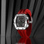 This men's watch is an unique combination of mechanics and science fiction. The novel double-arch bridge tonneau-shaped case design is ergonomic, so that you can wear it comfortably without losing the trendy style. The splicing of gears, simple Arabic numerals and three practical chronograph dials present compact style for you.